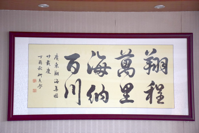 “翔程万里,海纳百川”,佛山市著名书法家亲自提笔,祝贺广东乐鱼网站web版集团20周年庆典。